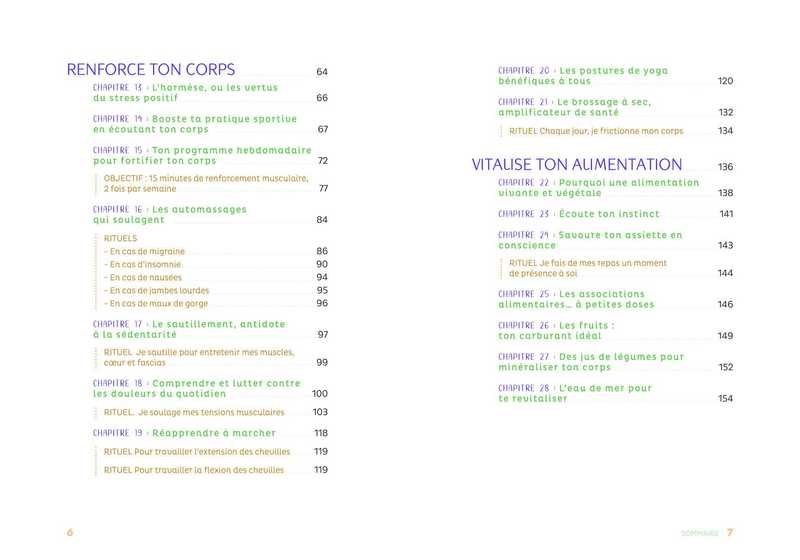 3 - Renforce ton corps : programme hebdomadaire pour fortifier ton corps et te remettre en mouvement, automassages qui soulagent, postures de yoga pour tous les jours, brossage à sec pour amplifier ta santé…