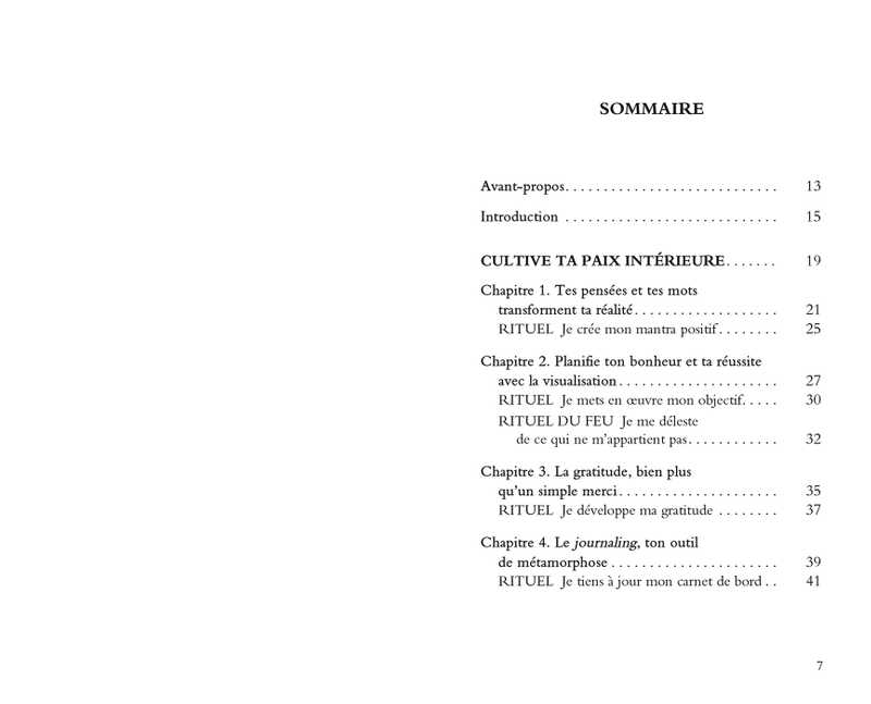 • Cultive ta paix intérieure : visualisation, gratitude, bilan de journée, mantras et journaling comme outils de métamorphose intérieure.