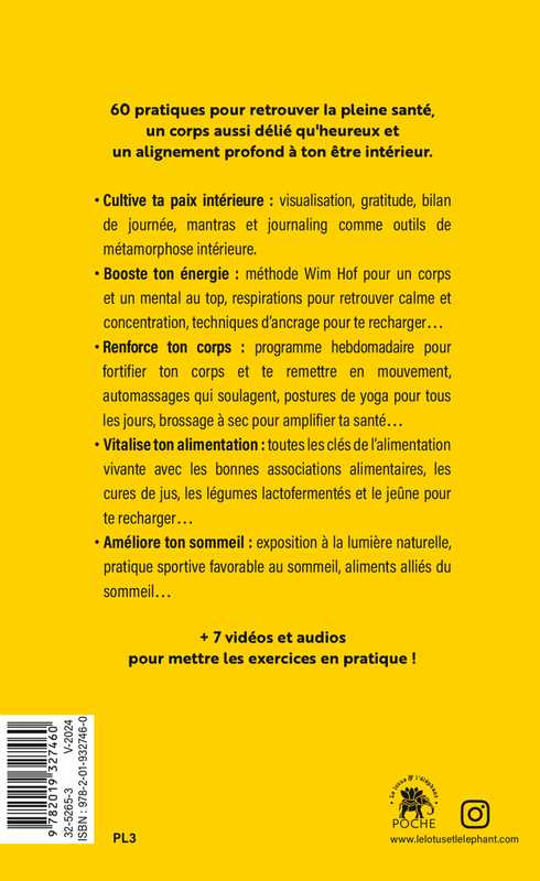60 pratiques pour retrouver la pleine santé, un corps aussi délié qu'heureux et un alignement profond à ton être intérieur.