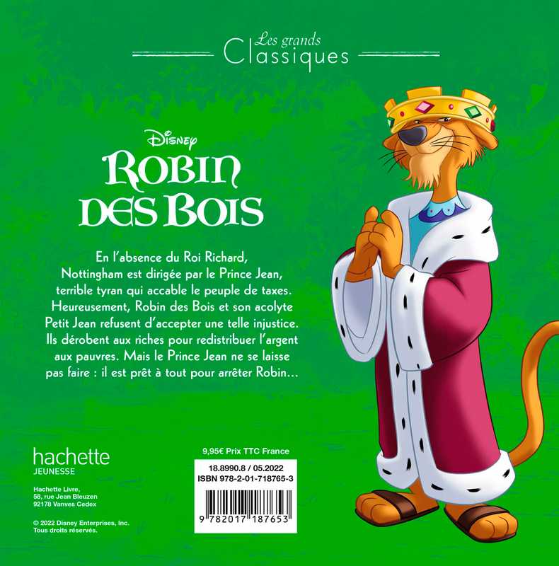 L'histoire : En l’absence du Roi Richard, Nottingham est dirigée par le Prince Jean, terrible tyran qui accable le peuple de taxes. Heureusement, Robin des Bois et son acolyte Petit Jean refusent d’accepter une telle injustice. Ils dérobent aux riches pour redistribuer l’argent aux pauvres. Mais le Prince Jean ne se laisse pas faire : il est prêt à tout pour arrêter Robin…