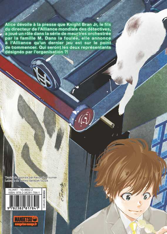 Alice dévoile à la presse que Knight Bran Jr, le fils du directeur de l'Alliance mondiale des détectives, a joué un rôle dans la série de meurtres orchestrée par la famille M. Dans la foulée, elle annonce à l'Alliance qu'un dernier jeu est sur le point de commencer. Qui seront les deux représentants désignés par l'organisation ?!