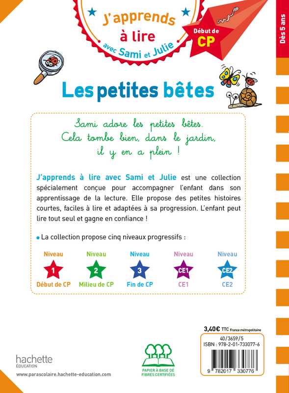 « J’apprends à lire avec Sami et Julie » est une collection de petites histoires spécialement conçue pour les enfants apprenant à lire. Le texte est écrit en gros, les mots sont bien détachés les uns des autres et les lignes bien espacées. Les histoires sont courtes, drôles et très faciles à lire. Écrites avec des mots en adéquation avec leur progression, une quantité de texte à lire réduite et adaptée, pour que l’enfant reste motivé et prenne confiance.