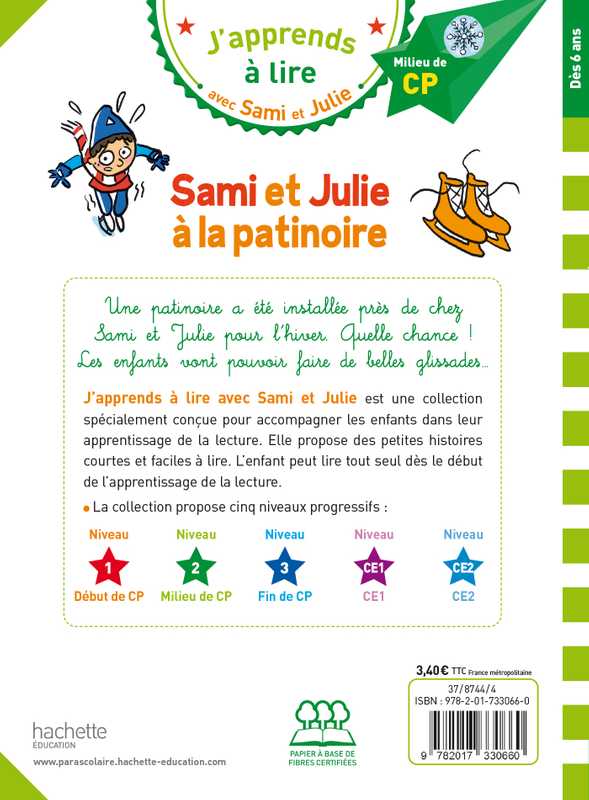 « J’apprends à lire avec Sami et Julie » est une collection de petites histoires spécialement conçue pour les enfants apprenant à lire. Le texte est écrit en gros, les mots sont bien détachés les uns des autres et les lignes bien espacées. Les histoires sont courtes et très faciles à lire. Écrites avec des mots en adéquation avec leur progression, une quantité de texte à lire réduite et adaptée, pour que l’enfant reste motivé et prenne confiance.