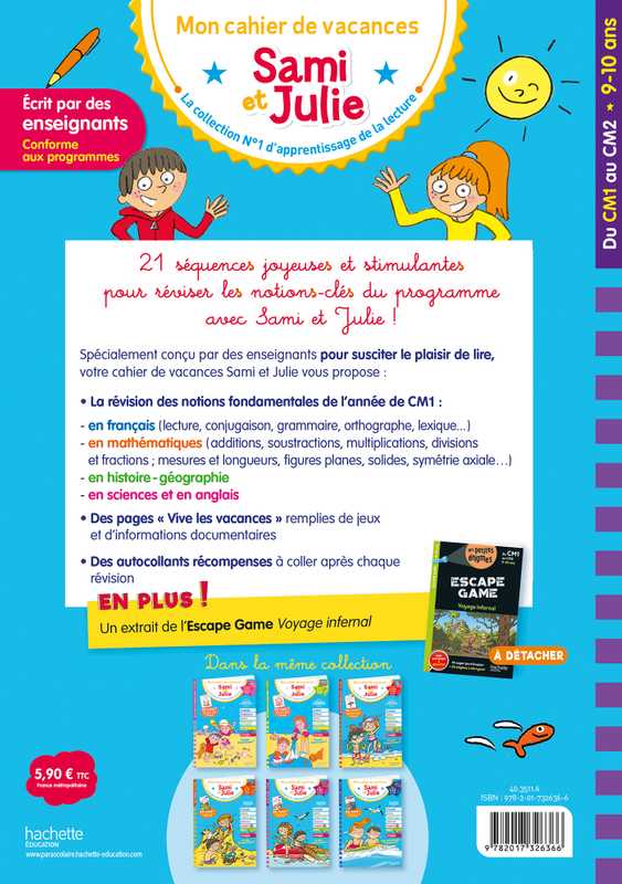 Spécialement conçu par des enseignants pour susciter le plaisir de lire, votre cahier de vacances Sami et Julie vous propose :