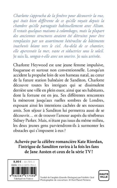 Charlotte Heywood est une jeune femme impulsive, fougueuse et surtout non conventionnelle. Lorsqu'un accident la propulse au coeur de la future station balnéaire de Sanditon, Charlotte découvre toutes les intrigues qui se dissimulent derrière une ville en plein essor. Ses différentes rencontres la mèneront des Antilles aux ruelles sombres de Londres, exposant ainsi les intentions cachées de ses nouveaux amis et lui permettant de se découvrir... et de trouver l'amour auprès du ténébreux Sidney Parker. Mais n'étant pas issus du même milieu, les deux jeunes gens parviendront-ils à surmonter les obstacles qui s'imposent à eux ?