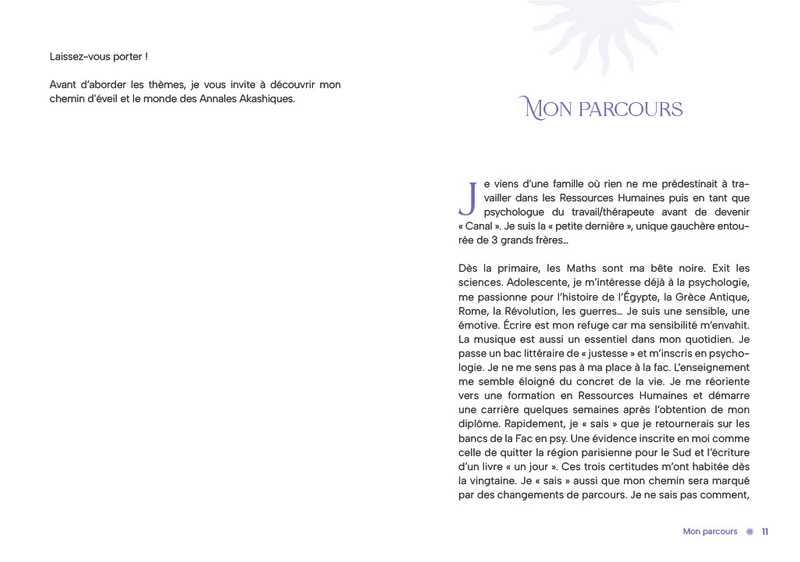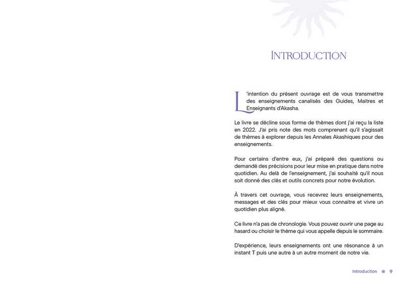 Cet ouvrage rassemble les messages canalisés par l’autrice en connexion avec les Guides, les Maîtres et les Enseignants d’Akasha. À la croisée du spirituel et du concret, ces enseignements offrent des clés de compréhension et d’évolution pour accompagner chacun sur son chemin.