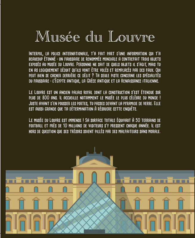 Certains de nos célèbres châteaux ou œuvres d'art sont en danger ! Un étrange message vous est parvenu, vous étiez loin d'imaginer où allait vous mener cette aventure. Au programme : mystères et casse-têtes en tous genres pour parvenir à protéger nos châteaux et œuvres d'art préférés !