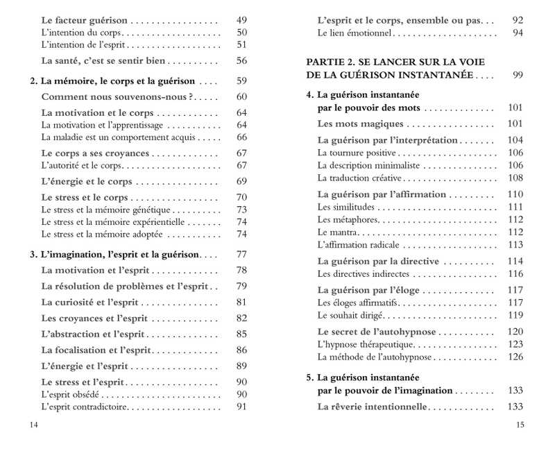 - plus de 100 pratiques et conseils d'autoguérison (visualisations, respirations, automassages, etc.) ;