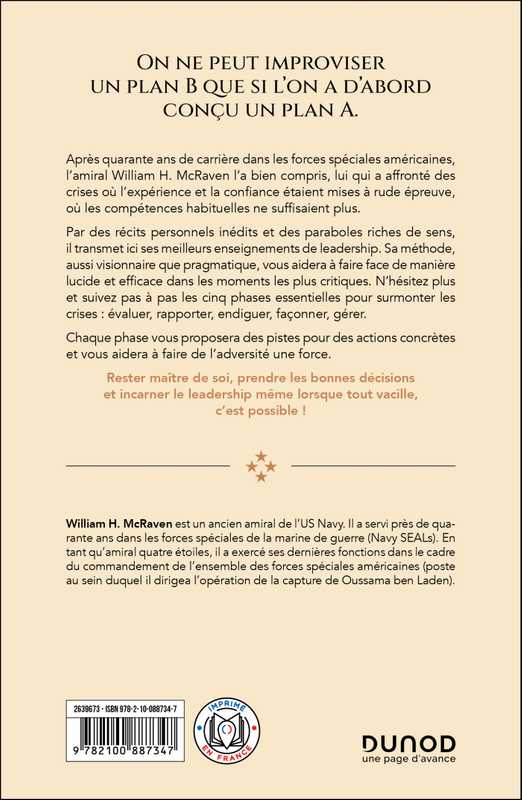 Après quarante ans de carrière dans les forces spéciales américaines, l’amiral William H. McRaven l’a bien compris, lui qui a affronté des crises où l’expérience et la confiance étaient mises à rude épreuve, où les compétences habituelles ne suffisaient plus.