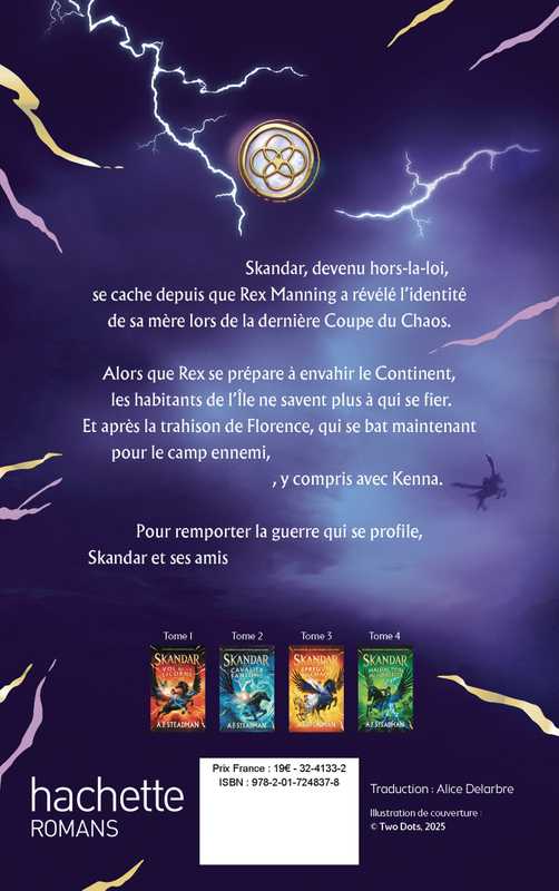 L’Île est en guerre. Skandar, devenu hors-la-loi, se cache depuis que Rex Manning a révélé l’identité de sa mère lors de la dernière Coupe du Chaos. Mais alors que Rex se prépare à envahir le continent, les habitants de l’Île ne savent plus à qui se fier. Et après la trahison de Florence, qui se bat maintenant pour le camp ennemi, Skandar doit construire de nouvelles alliances, y compris avec Kenna. Pour remporter la Guerre de l’Esprit, Skandar et ses amis devront remonter aux origines de l’Île et exploiter toute la puissance de leur magie.