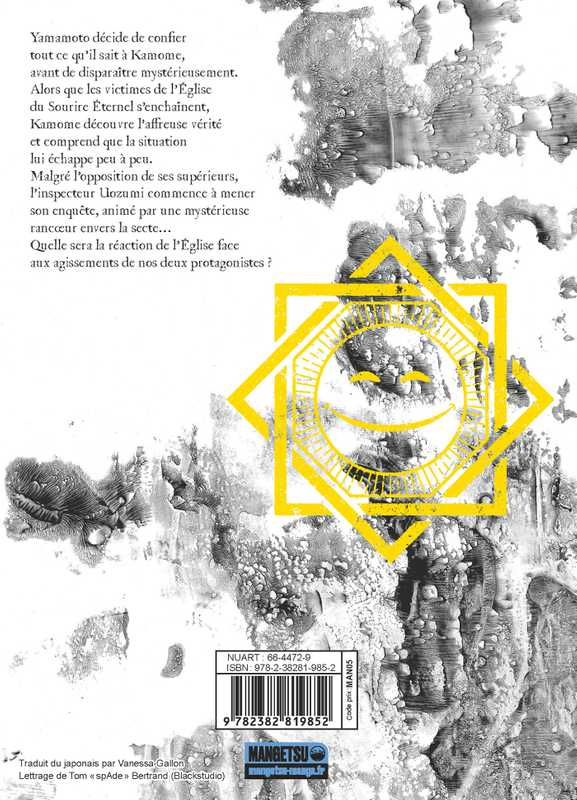 Publiée chez Nihon Bungeisha, Smile! est une oeuvre qui plonge le lecteur dans les ténèbres d'un culte inquiétant. Hattori Mitei vous entraîne dans un thriller des plus haletants et un drame psychologique inoubliable.