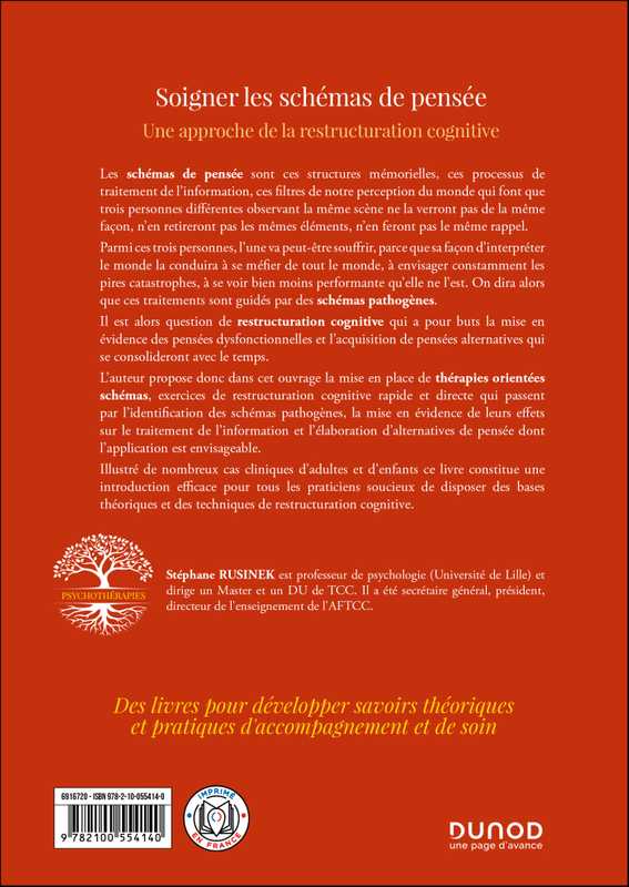 Les schémas de pensée désignent, dans les thérapies comportementales et cognitives, les processus cognitifs qui «filtrent» notre perception de la réalité et de notre vie. Comment identifier et « reconstruire » ces schémas défaillants chez les personnes notamment dépressives... c'est l'objet de ce livre qui s'appuie sur de nombreux exemples cliniques et détaille outils et techniques.