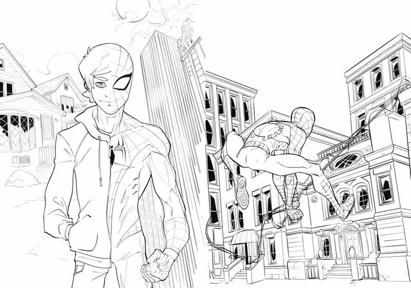 – De grandes illustrations des personnages de l’univers Spider-Man à colorier !
