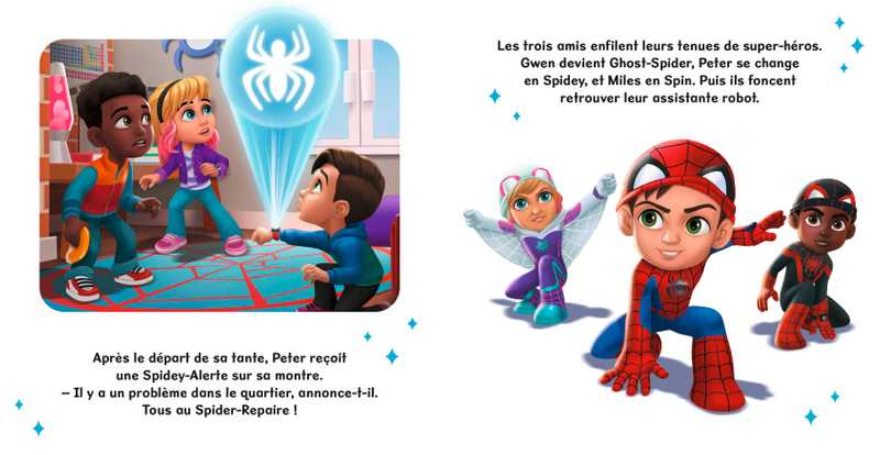 Résumé : Alors que Peter, Gwen et Miles s’amusent ensemble, TRACE-E le robot leur envoie une Spider-Alerte. Rhino, le super-vilain, vient de braquer une banque ! Aussitôt, Spidey, Spin et Ghost-Spider partent combattre le méchant.