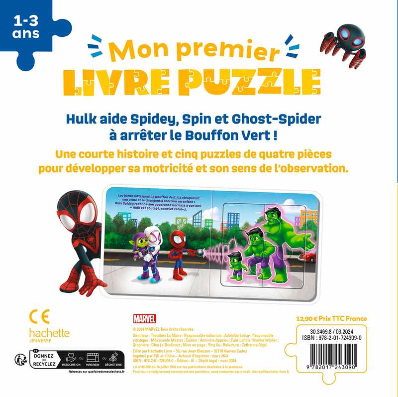 Sur chaque page de droite, un puzzle de quatre pièces pour développer la motricité et le sens de l’observation de votre enfant.