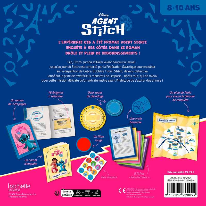 Quand lire devient un jeu d'enquête avec Stitch ! Un coffret comprenant un roman inédit avec plein d'énigmes à résoudre au fil des pages et plein d'accessoires.