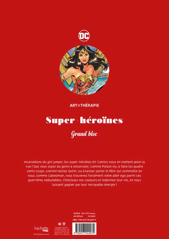 Wonder Woman, Catwoman, Poison Ivy ou Harley Queen, retrouvez entre ces pages les plus puissantes héroïnes de l'univers DC Comics. Entre poses badass et combats épiques, laissez-vous porter par leur force et leur énergie, et redonnez-leur des couleurs vibrantes !