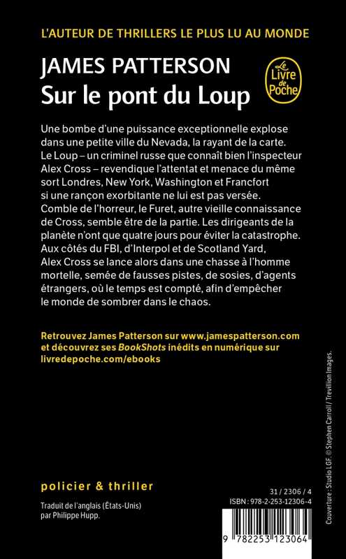 Une bombe d’une puissance exceptionnelle explose dans une petite ville du Nevada, la rayant de la carte. Le Loup – un criminel russe que connaît bien l’inspecteur Alex Cross – revendique l’attentat et menace du même sort Londres, New York, Washington et Francfort si une rançon exorbitante ne lui est pas versée. Comble de l’horreur, le Furet, autre vieille connaissance de Cross, semble être de la partie. Les dirigeants de la planète n’ont que quatre jours pour éviter la catastrophe. Aux côtés du FBI, d’Interpol et de Scotland Yard, Alex Cross se lance alors dans une chasse à l’homme mortelle, semée de fausses pistes, de sosies, d’agents étrangers, où le temps est compté, afi n d’empêcher le monde de sombrer dans le chaos.