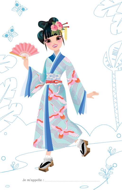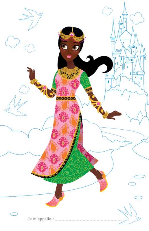 Des tenues de fête du monde entier. Un bloc à spirale avec 21 silhouettes à habiller grâce à 7 planches d'autocollants (dont une planche avec des détails dorés et une planche avec des détails pailletés), 1 planche de stickers accessoires et 2 planches de strass.