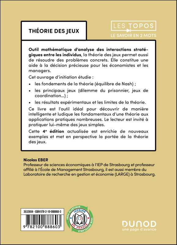 - les fondements de la théorie (équilibre de Nash) ;