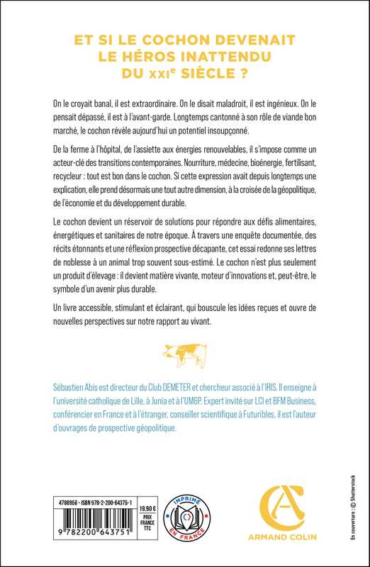 Le cochon devient un réservoir de solutions pour répondre aux défis alimentaires, énergétiques et sanitaires de notre époque. À travers une enquête documentée, des récits étonnants et une réflexion prospective décapante, cet essai redonne ses lettres de noblesse à un animal trop souvent sous-estimé. Le cochon n’est plus seulement un produit d’élevage : il devient matière vivante, moteur d’innovations et, peut-être, le symbole d’un avenir plus durable.