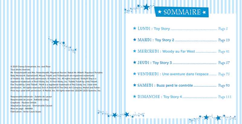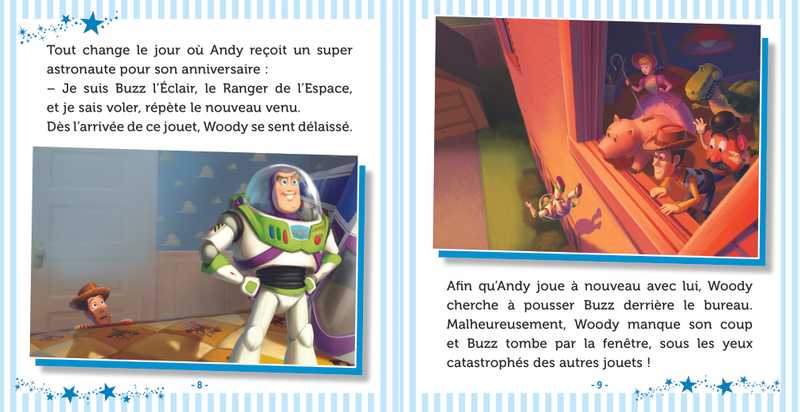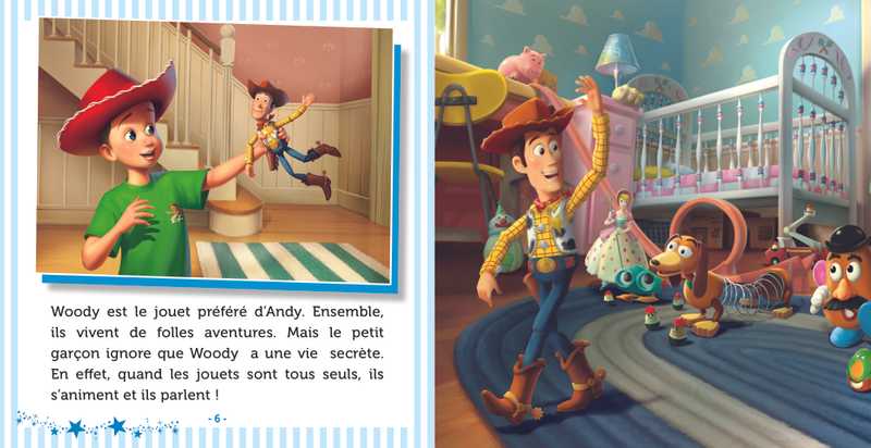 – Un recueil de 7 histoires richement illustré et facile à lire, pour revivre les histoires complètes des films : Toy Story 1, 2, 3, 4 et des histoires inédites.