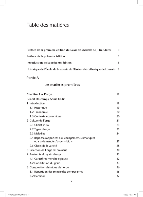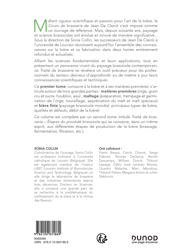 Mêlant rigueur scientifique et passion pour l’art de la bière, le Cours de brasserie de Jean De Clerck s’est imposé comme un ouvrage de référence. Mais, depuis soixante ans, paysage et science brassicoles ont évolué et innové de manière significative... Sous la direction de Sonia Collin, les successeurs de Jean De Clerck à l’université de Louvain réunissent aujourd’hui l’ensemble des connaissances sur la bière et sa fabrication dans deux tomes entièrement refondus et actualisés.