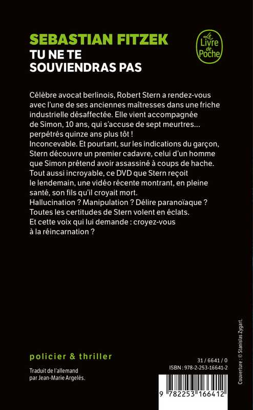 Célèbre avocat berlinois, Robert Stern a rendez-vous avec l'une de ses anciennes maîtresses dans une friche industrielle désaffectée. Elle vient accompagnée de Simon, 10 ans, qui s'accuse de sept meurtres… perpétrés quinze ans plus tôt ! Inconcevable. Et pourtant, sur les indications du garçon, Stern découvre un premier cadavre, celui d'un homme que Simon prétend avoir assassiné à coups de hache. Tout aussi incroyable, ce DVD que Stern reçoit le lendemain, une vidéo récente montrant, en pleine santé, son fils qu'il croyait mort. Hallucination ? Manipulation ? Délire paranoïaque ? Toutes les certitudes de Stern volent en éclats. Et cette voix qui lui demande : croyez-vous à la réincarnation ?