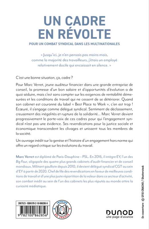 Pour Marc Verret, jeune auditeur financier dans une grande entreprise de conseil, la promesse d’un bon salaire et d’opportunités d’évolution a de quoi séduire, mais c’est sans compter sur les exigences de rentabilité démesurées et les conditions de travail qui ne cessent de se détériorer. Quand son cabinet est couronné du label « Best Place to Work », c'en est trop ! Écœuré, il s'engage comme délégué syndical. Sentiment de déclassement, creusement des inégalités et rupture de la solidarité… Marc Verret devient progressivement le porte-voix de ces cadres pour qui l’engagement syndical n’est pas une évidence. Ses revendications pour la justice sociale et économique transcendent les clivages et unissent tous les membres de la société.