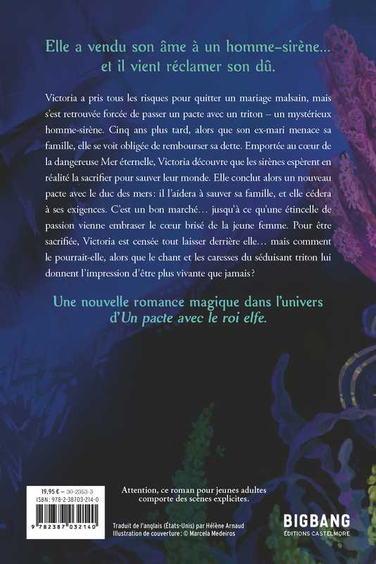 Elle conclut alors un nouveau marché avec le Duc des mers : il l'aidera à sauver sa famille, et elle cèdera à ses exigences. C'est un bon marché... jusqu'à ce qu'une étincelle de passion vienne embraser le coeur brisé de la jeune femme. Pour être sacrifiée, Victoria est censée tout laisser derrière elle... mais comment le pourrait-elle, alors que le chant et les caresses du séduisant triton lui donnent l'impression d'être plus vivante que jamais ?