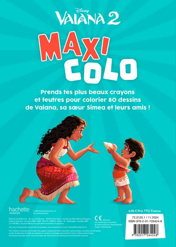– De grandes illustrations pour colorier Vaiana, sa sœur Simea, Maui et plein d’autres personnages selon ses envies !