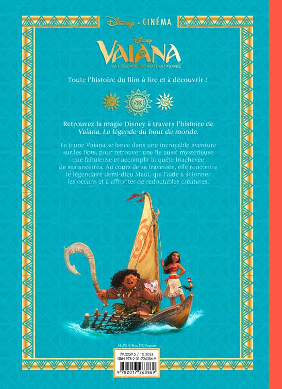 Résumé : La jeune Vaiana se lance dans une incroyable aventure sur les flots, pour retrouver une île aussi mystérieuse que fabuleuse et accomplir la quête inachevée de ses ancêtres. Au cours de sa traversée, elle rencontre le légendaire demi-dieu Maui, qui l'aide à sillonner les océans et à affronter de redoutables créatures.