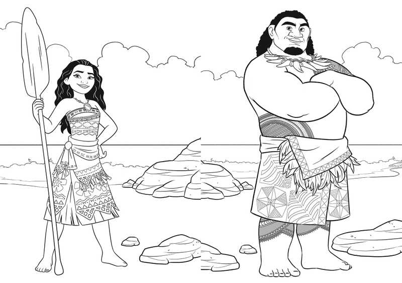 Un cahier de 80 coloriages en noir et blanc des personnages du film Vaiana : La Légende du bout du monde !