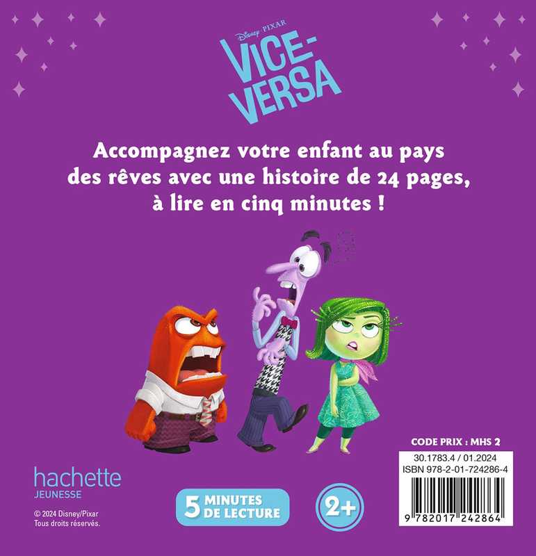 Dans cet ouvrage de 24 pages richement illustré, au texte court, facile et rapide à lire, découvrez l’histoire du film Vice-Versa. Un texte adapté aux plus petits pour un temps de lecture de 5 minutes.