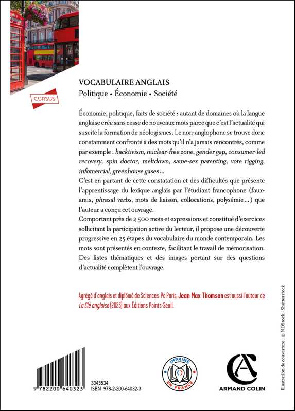 C’est en partant de cette constatation et des difficultés que présente l’apprentissage du lexique anglais par l’étudiant francophone (faux-amis, phrasal verbs, mots de liaison, collocations, polysémie…) que l’auteur a conçu cet ouvrage.