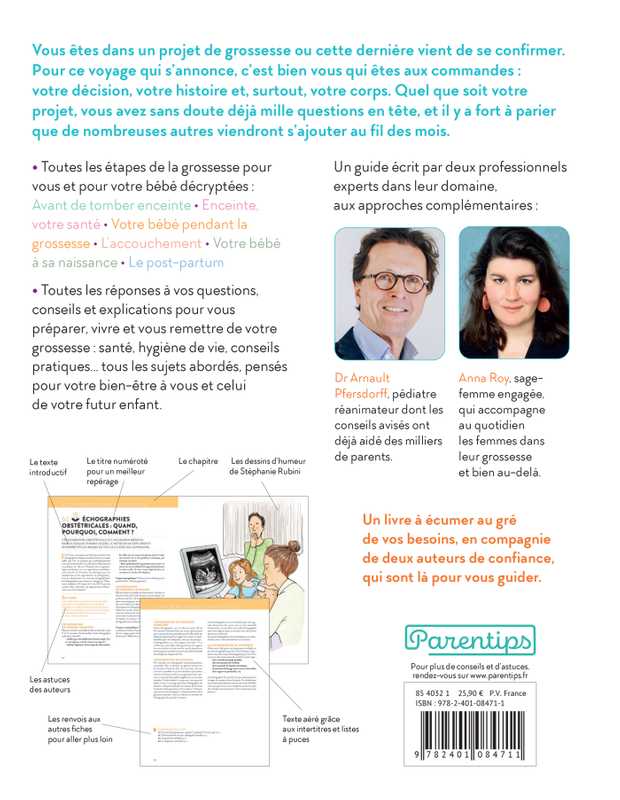 - Un guide écrit par deux professionnels experts dans leur domaine, aux approches complémentaires : le Dr Arnault Pfersdorff, pédiatre renommé dont les conseils avisés ont déjà aidé des milliers de parents et Anna Roy, sage-femme engagée aux multiples casquettes, qui accompagne au quotidien les femmes dans leur grossesse et bien au-delà.
