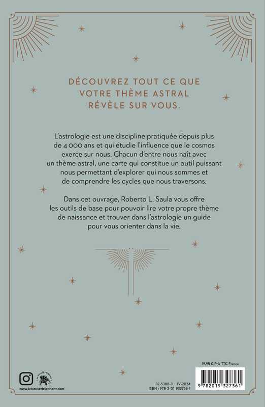 Dans cet ouvrage, Roberto L. Saula vous offre les outils de base pour pouvoir lire votre propre thème de naissance et trouver dans l'astrologie un guide pour vous orienter dans la vie.