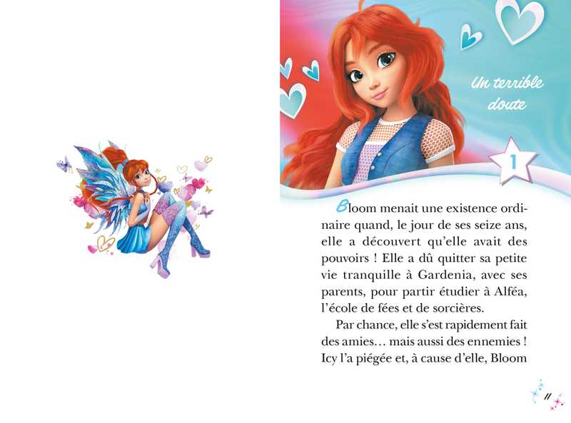 Le jour de ses seize ans, Bloom fait une rencontre extraordinaire. Deux jeunes fées, Stella et Flora, viennent la chercher pour l’emmener à Alféa, l’école des fées. Tout est nouveau pour Bloom : les élèves, les professeurs, ses pouvoirs… Réussira-t-elle à s’intégrer sans trop se faire remarquer ?