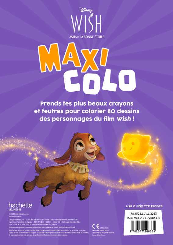 Un cahier de 80 coloriages en noir et blanc des personnages du film Wish, Asha et la Bonne Étoile !