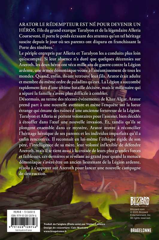 Désormais, au terme des récents événements de Khaz Algar, Arator prend part à une nouvelle aventure et mène l'enquête sur la lueur étrange qui émane des ruines d'une ancienne forteresse de la Légion. Turalyon et Alleria se portent volontaires pour l'assister, bien décidés à étouffer dans l'oeuf une nouvelle invasion ourdie par leur ennemi de toujours. Et tandis qu'ils se plongent ensemble dans ce mystère, Arator oeuvre à réconcilier l'héritage héroïque de ses parents et les individus imparfaits qu'il a croisés au fil de sa vie. Il reconnaît ses deux géniteurs en lui-même : l'éthique rigide du père, l'intelligence de la mère, leur volonté inflexible de défendre Azeroth. Mais Arator existe à la croisée des chemins de leurs plus grandes forces et faiblesses, ces dernières se révélant au grand jour quand la menace démoniaque s'avère être un ancien lieutenant de la Légion ardente, résolu à s'appuyer sur Azeroth pour lancer une nouvelle campagne de destruction.