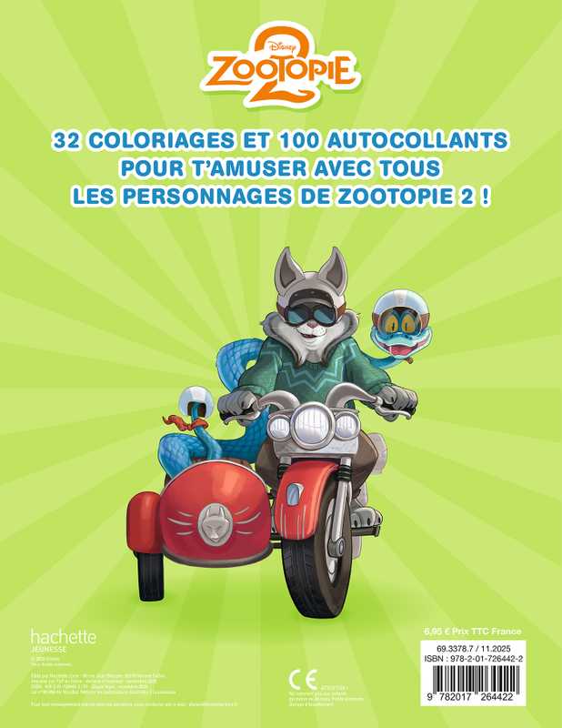 SORTIE CINEMA - Nouveau film Disney "Zootopie 2" au cinéma le 26 novembre. La suite des aventures de Nick et Judy à colorier dans près de 32 coloriages en noir et blanc avec 100 autocollants.