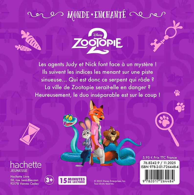L’histoire : Les agents Judy et Nick font face à un mystère ! Ils suivent des indices les menant sur une piste sinueuse… Qui est donc ce serpent qui rôde ? La ville de Zootopie serait-elle en danger ? Heureusement, le duo inséparable est sur le coup !