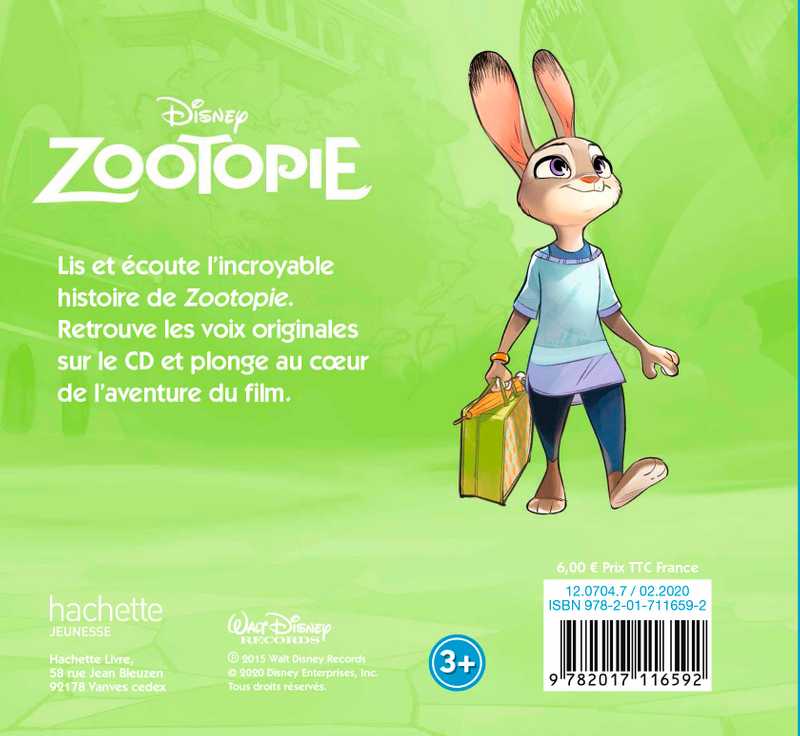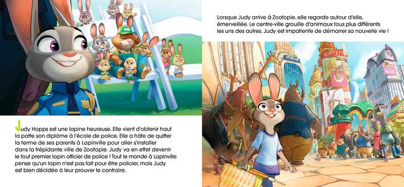 – Un petit album illustré de 48 pages, de la taille d’un boitier CD, pour découvrir les aventures de Judy Hopps et Nick.